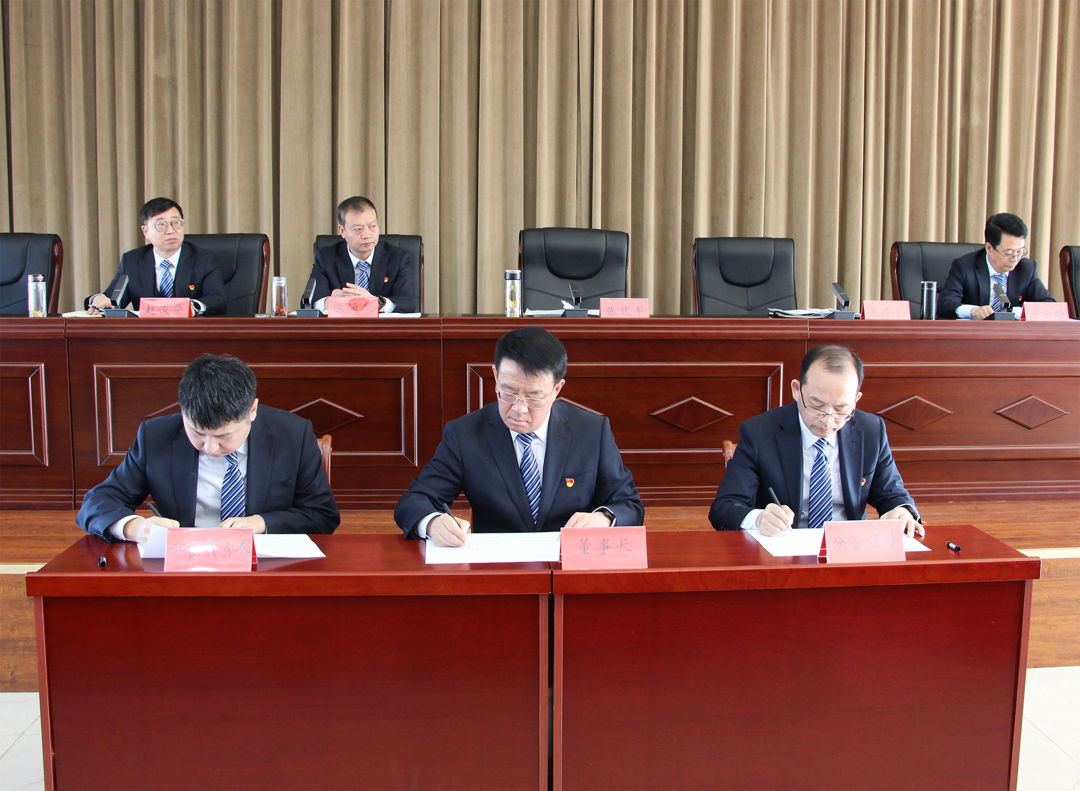 會議宣讀了集團公司2022年度受表彰情況,通報了獲得年度優(yōu)秀的部室、子公司、中層管理人員及員工,與會領(lǐng)導(dǎo)向獲獎集體和個人頒發(fā)了錦旗、榮譽證書。按照2023年度工作部署要求,黨委書記、董事長張建軍代表集團公司逐一與集團公司各部室及實際控制子公司簽訂了《2023年度績效考核目標責任書》,堅持目標導(dǎo)向,強化責任,傳導(dǎo)壓力。