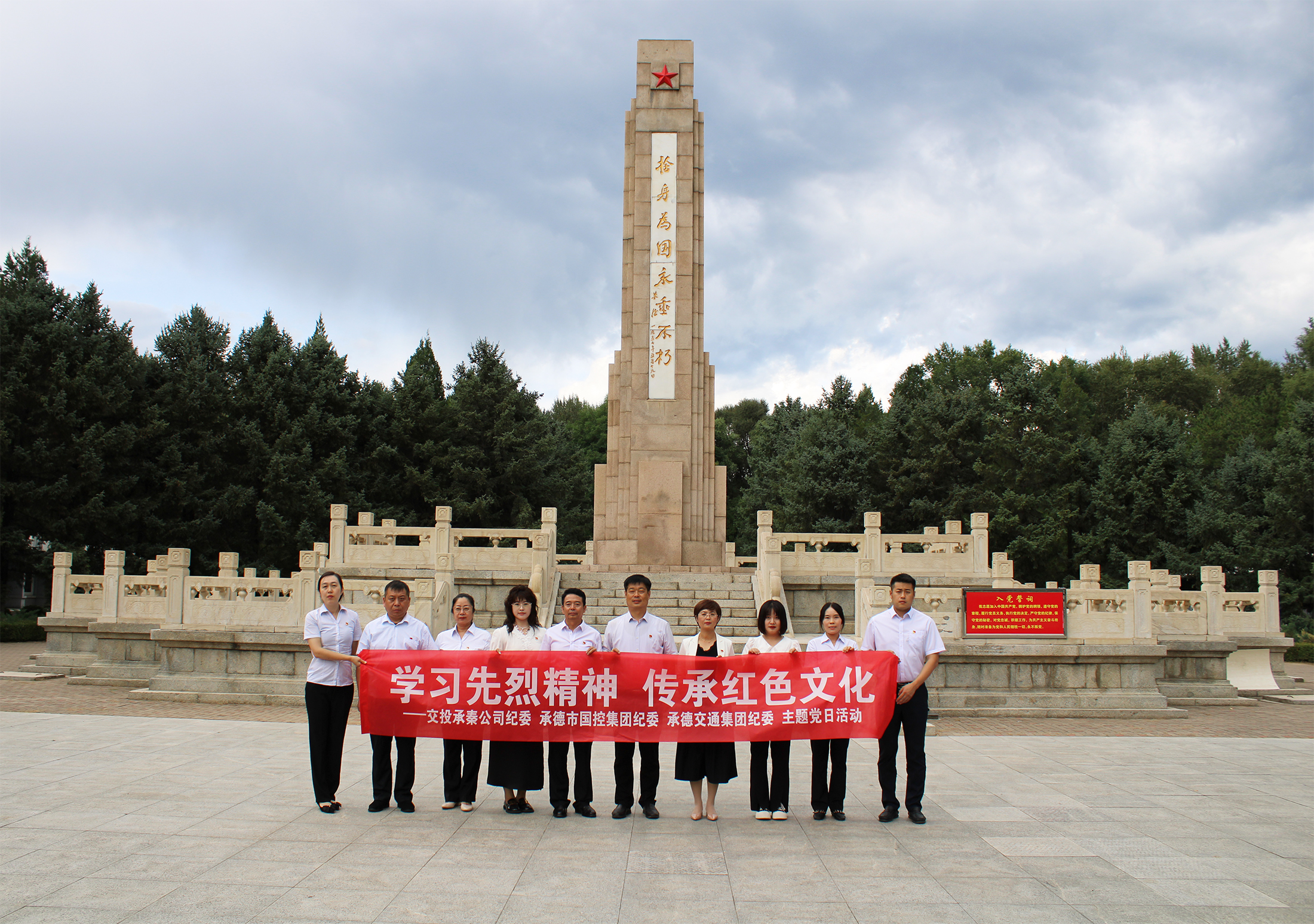 為深入學(xué)習(xí)貫徹習(xí)近平新時(shí)代中國(guó)特色社會(huì)主義思想,扎實(shí)推進(jìn)紀(jì)檢監(jiān)察干部隊(duì)伍教育整頓工作,8月30日,國(guó)控集團(tuán)紀(jì)委與交投承秦公司紀(jì)委、交通集團(tuán)紀(jì)委全體紀(jì)檢干部到隆化縣董存瑞烈士紀(jì)念館開展主題黨日活動(dòng),學(xué)習(xí)先烈精神,傳承紅色文化。